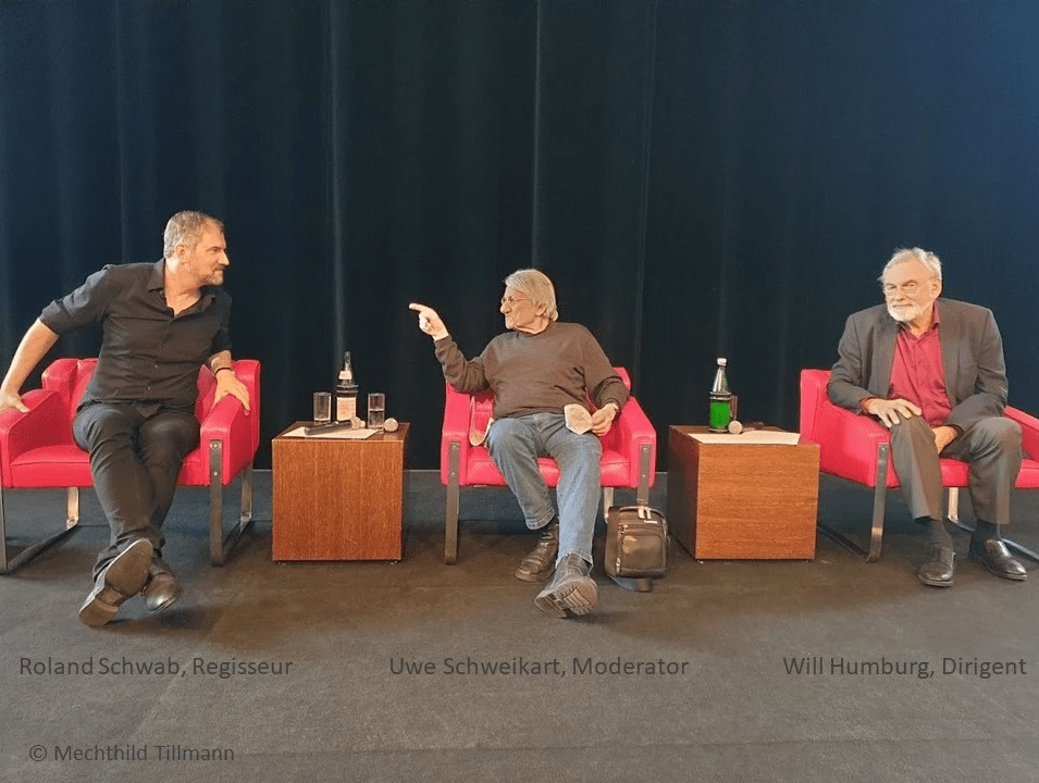 Diese Thematik, ihre dramaturgische und musikalische Umsetzung diskutierten der Regisseur Roland Schwab (den Bonnern mit seiner eindrücklichen Inszenierung von Oberst Chabert bekannt) und der Dirigent Will Humburg („der beste deutsche Verdi-Dirigent“), moderiert vom Verdi-Experten Uwe Schweikert, ebenfalls gern gesehener und äußerst sachkundiger Gast in Bonn.