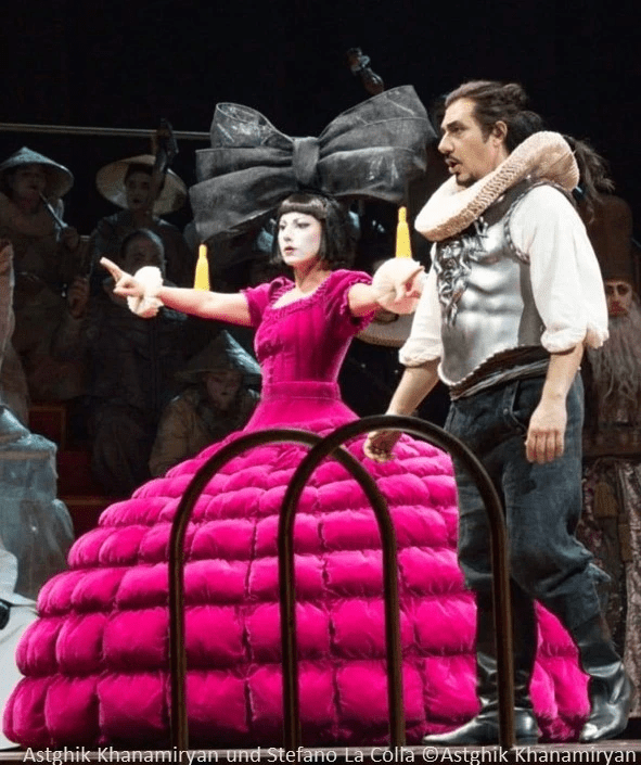Wie ein zeitgenössisch angemessener Marco Polo kommt der „Drachenbezwinger“ Calaf kaum daher. Eher wie Sir Francis Drake oder Vasco da Gama, mit hohen Liederstiefeln und gefälteter Halskrause. Ein Tenor wie im (Helden-)Bilderbuch! Mit seinem siegessicheren „Vincerò“ am Ende der Superhit-Arie „Nessun dorma“ lässt er die ganze Halle erbeben; der Szenenapplaus könnte kaum begeisterter ausfallen. Calaf hat sich zur Paraderolle für den italienischen Tenor Stefano La Colla entwickelt, die er an den renommiertesten Opernhäusern der Welt bereits gesungen hat.